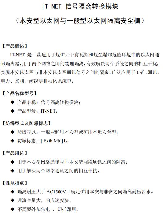 IT-NET信號(hào)隔離轉(zhuǎn)換模塊使用手冊(cè)